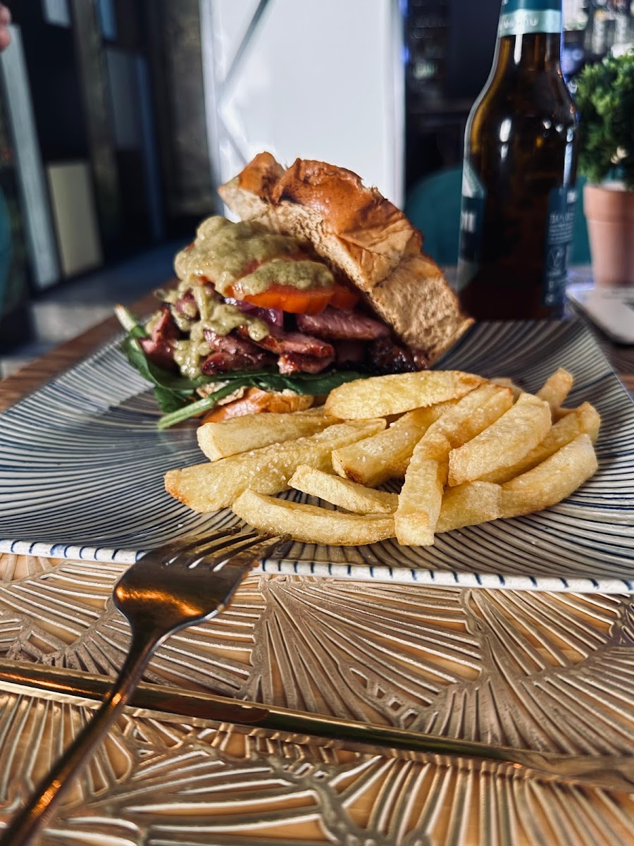 The menu at Restaurante Bar New Ponzano is a true testament to the rich flavors of Spain. Their Cócteles (cocktails) are a must-try, with expertly mixed drinks that are perfect for enjoying before or after a satisfying meal. Pair your drink with some of the restaurant's signature dishes, like the Taco de Rabo de Toro-a delicious, tender oxtail taco that combines rich flavors with a touch of spice. Another standout is the Ensalada de Burrata, a creamy and fresh salad that pairs perfectly with the restaurant’s relaxed vibe. For those craving something more substantial, the Jamón de Primera (top-quality ham) is a delectable option, offering an authentic taste of Spanish charcuterie. Don’t miss the Ensalada César, a classic dish elevated with fresh ingredients and a zesty dressing.